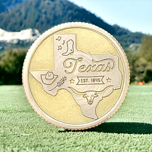 State Outline CNC Machined Laser Engraved Solid Brass Golf Ball Marker