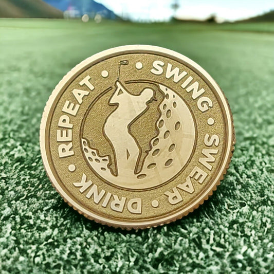"Swing, Swear, Drink, Repeat" CNC Machined Laser Engraved Solid Brass Golf Ball Marker
