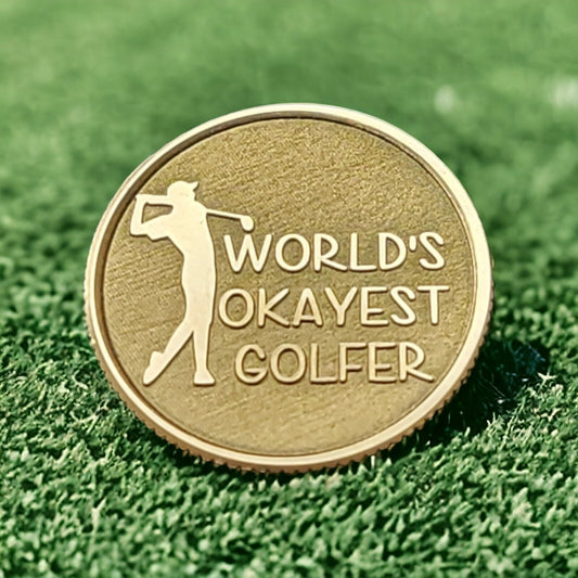 Worlds Okayest Golfer Solid Brass CNC Machined Laser Engraved Golf Ball Marker